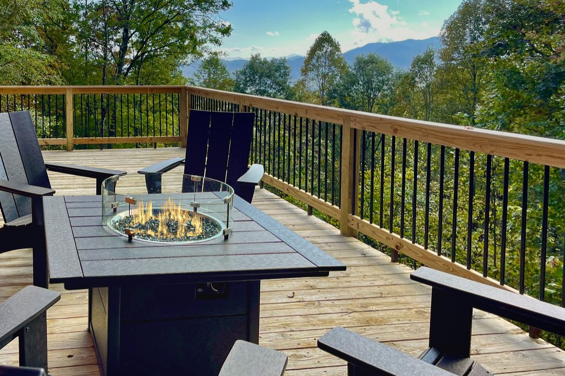 • Relax out in the cool mountain air in front of a warm Gas log fireplace on the deck