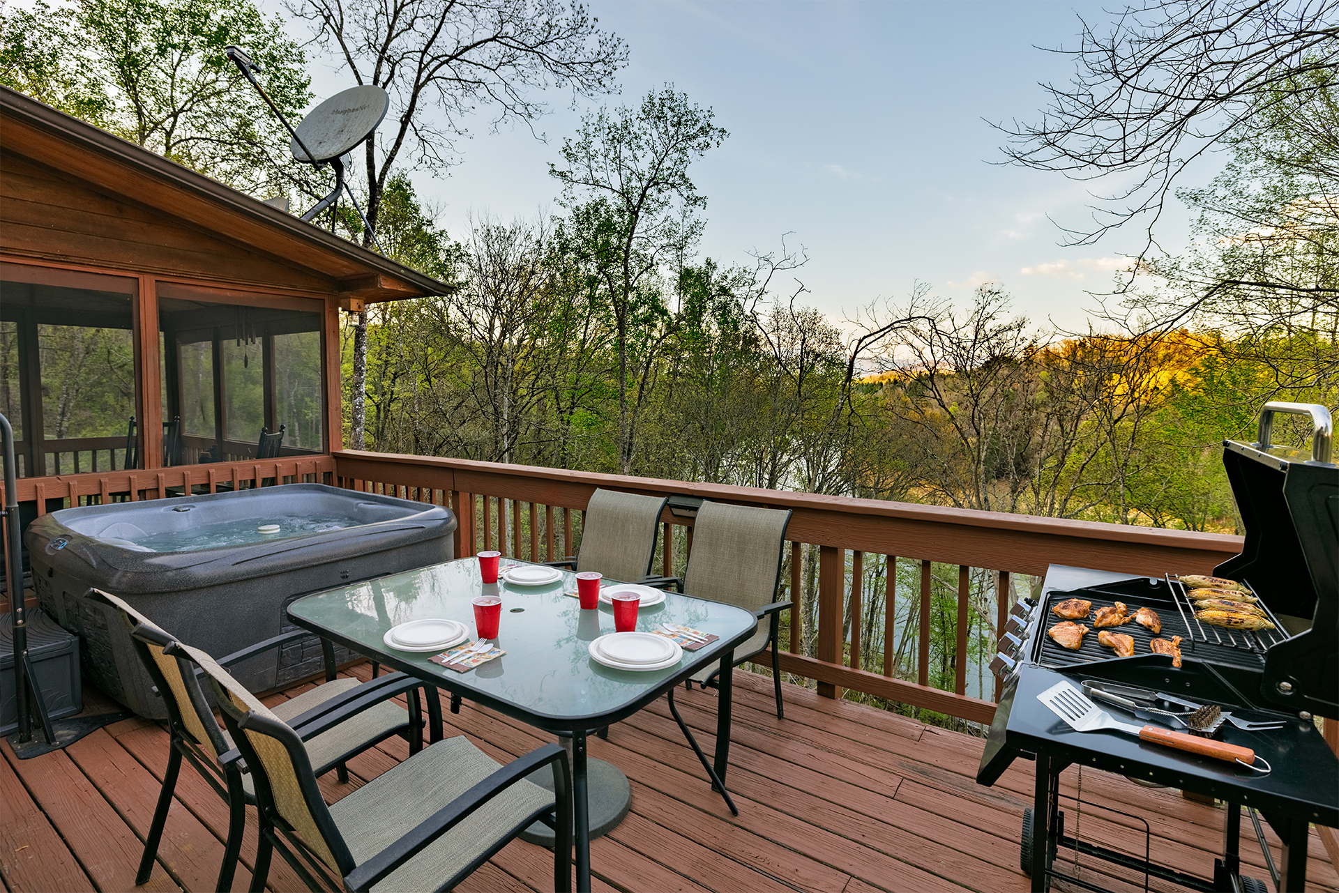 • Hot tub, Dinette table and gas grill on the open deck