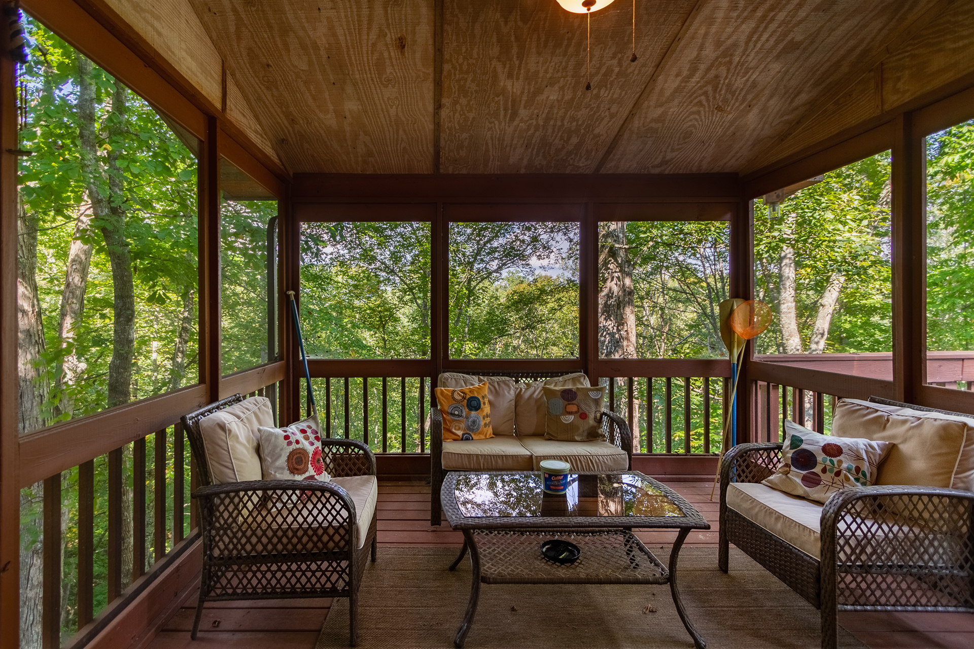 PLEASE NOTE: The privacy provided by trees and other natural vegetation decreases with the absence of leaves in the winter months. Only cabins tucked deepest in the forest or highest on a private mountaintop remain totally secluded and completely private in the winter months.