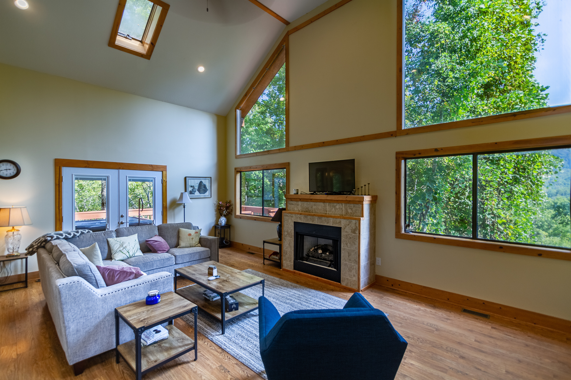 On the lower level is a cozy living area and TV room, a queen bedroom, two twin bedroom, full bath and laundry. Enjoy your favorite movie in the cooler months by the warm glow of the gas log stove.