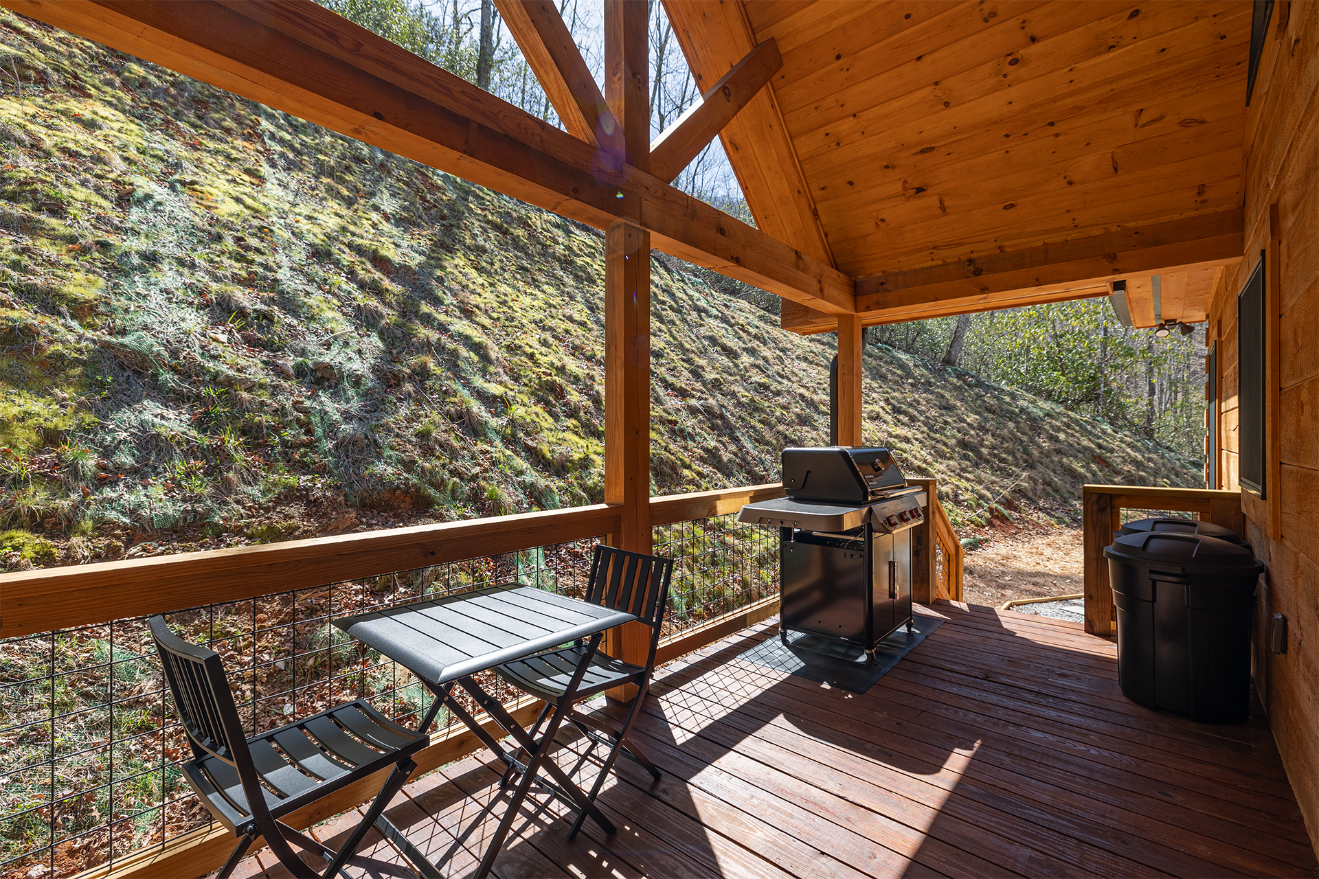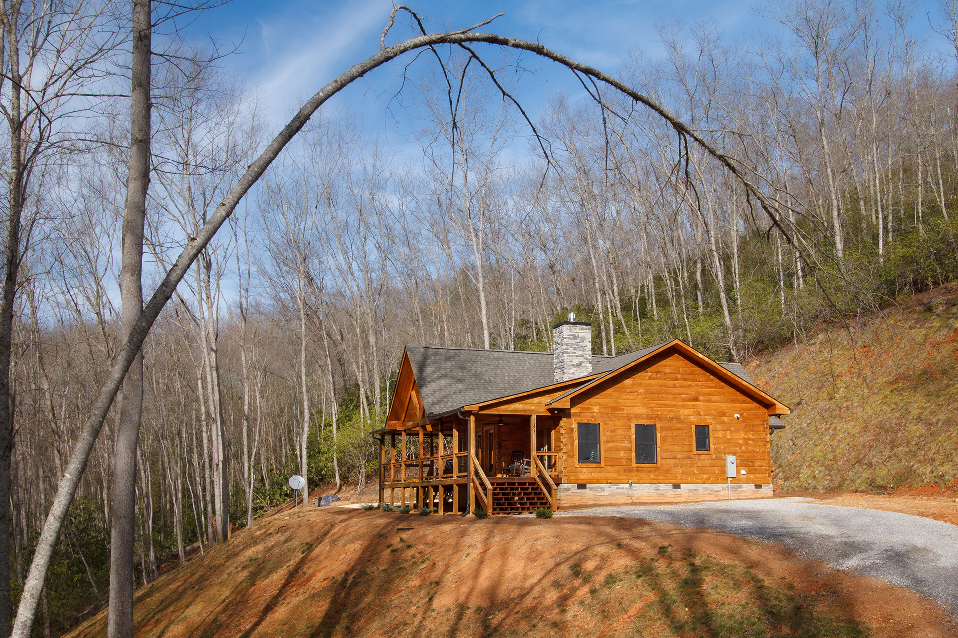 PLEASE NOTE: The privacy provided by trees and other natural vegetation decreases with the absence of leaves in the winter months. Only cabins tucked deepest in the forest or highest on a private mountaintop remain totally secluded and completely private in the winter months.