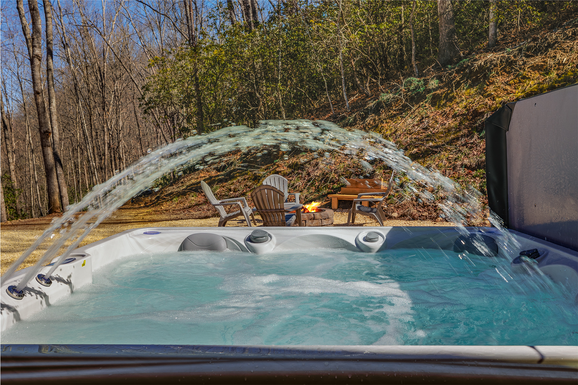 Outdoor Hot TubGas GrillStone Fire pit in yardWireless internet
