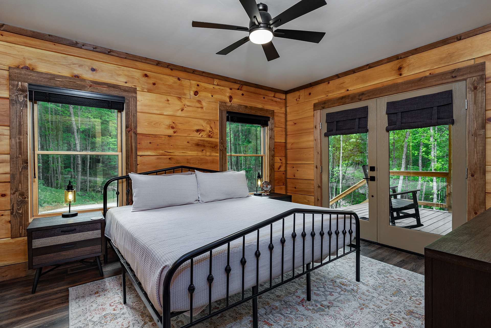 All cabins are NON-SMOKING and NO VAPING allowed indoors. If this regulation is violated and smoking is detected in the cabin, a $500 fine will be charged to the credit card on file for specialty cleaning and laundering services to remove odor from all soft surfaces within property. The tenant is liable for the expense to repair burns to furniture, bedding, carpet or other flooring. Tenant is liable for any lost revenue to property if next tenant must be transferred to a different property while odor mitigation and repairs are completed.