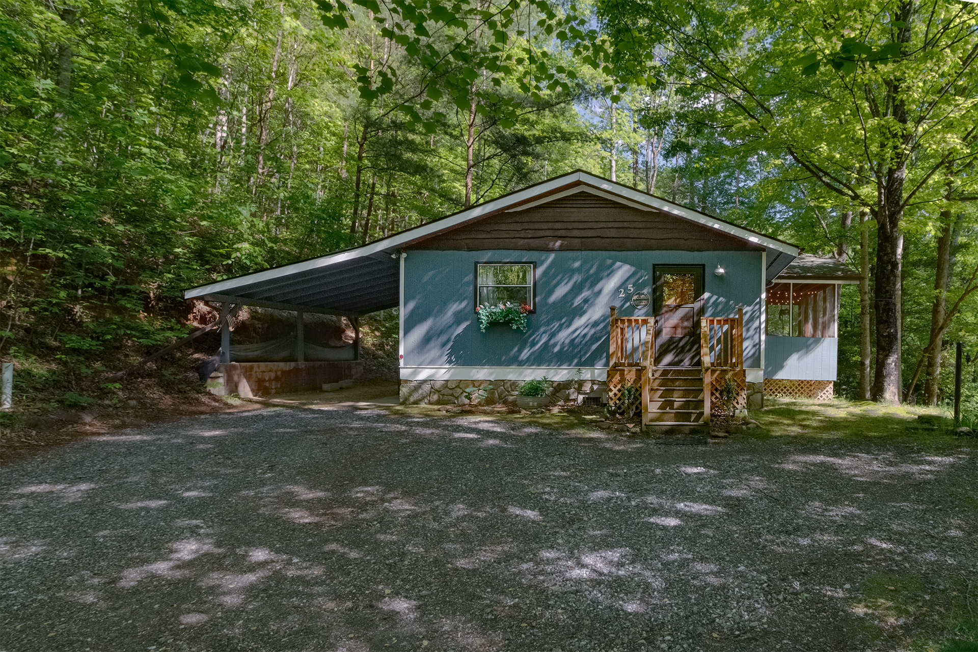 Most all standard vehicle types can confidently traverse the roads leading up the mountain. Lowered suspension, front wheel drive Mini-Vans and Motorcycles are not recommended. Paved and hard packed gravel sections on a well-maintained mountain road, Switchbacks and moderate to steep incline sections possible, no washed-out section. Bryson City is in the Great Smoky Mountains of North Carolina, where no mountain road is flat its full length.  As you travel to and from your cabin, the local roads may be very curvy, narrow, steep, paved, gravel or dirt.  Please be prepared to drive on these mountain roads when you are here.  CMV will not give refund or be held liable if guest does not adhere to minimum recommended vehicle type and is not able to or elects not to drive up road to cabin.