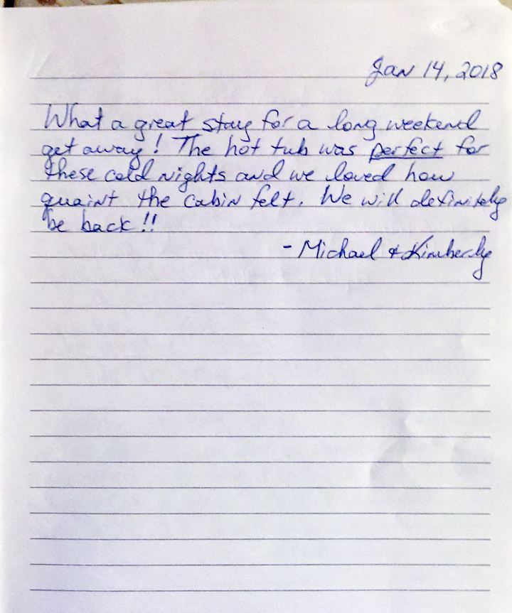 All cabins are NON-SMOKING and NO VAPING allowed indoors. If this regulation is violated and smoking is detected in the cabin, a $500 fine will be charged to the credit card on file for specialty cleaning and laundering services to remove odor from all soft surfaces within property. The tenant is liable for the expense to repair burns to furniture, bedding, carpet or other flooring. Tenant is liable for any lost revenue to property if next tenant must be transferred to a different property while odor mitigation and repairs are completed.