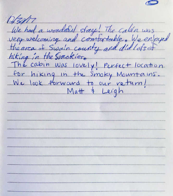 Cancellations with short notice are unfair to both Carolina Mountain Vacations as well as the Cabin owner.
