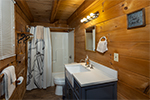 Walking through the front door you are welcomed into this quaint and cozy cabin. It has an open floor plan that creates warm and inviting environment for you to relax in. The living room is furnished with a comfortable couch for you to curl up and watch the flat screen TV or warm yourself by the gas log stove. The adjoining efficiency kitchen is equipped with all the cooking utensils for your dining enjoyment. The master bedroom is located on the main level and is furnished with a queen size bed, and there is a shared bathroom on the entry level with tub shower combo.